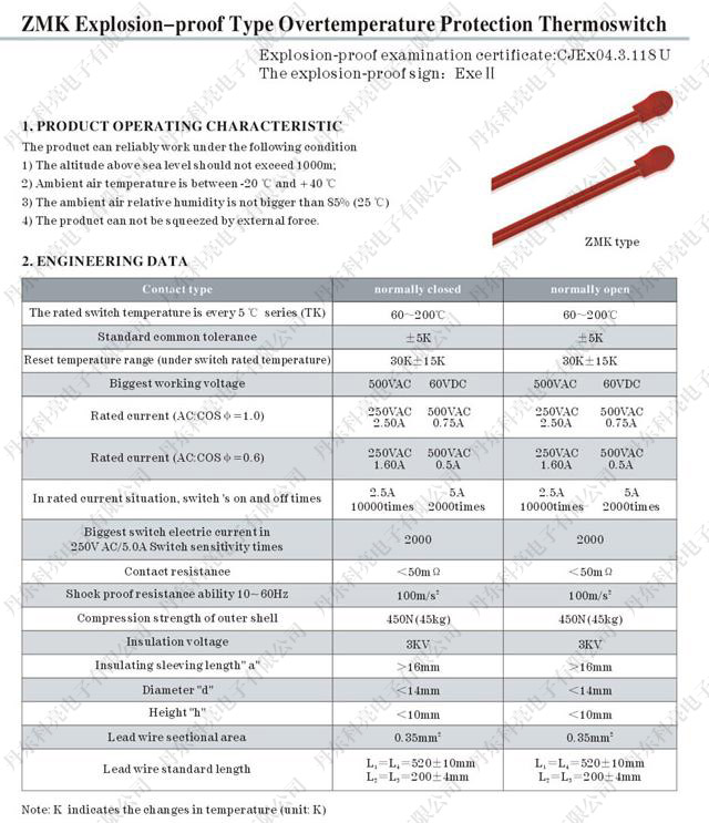 ZMK Explosion-proof Type Overtemperature Protection Thermoswitch