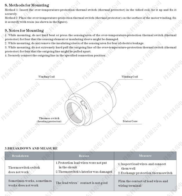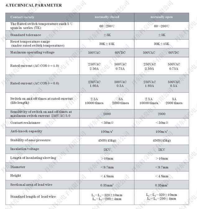 Resettable Over-temperature-protection Thermail Switch(Thermal Protector)