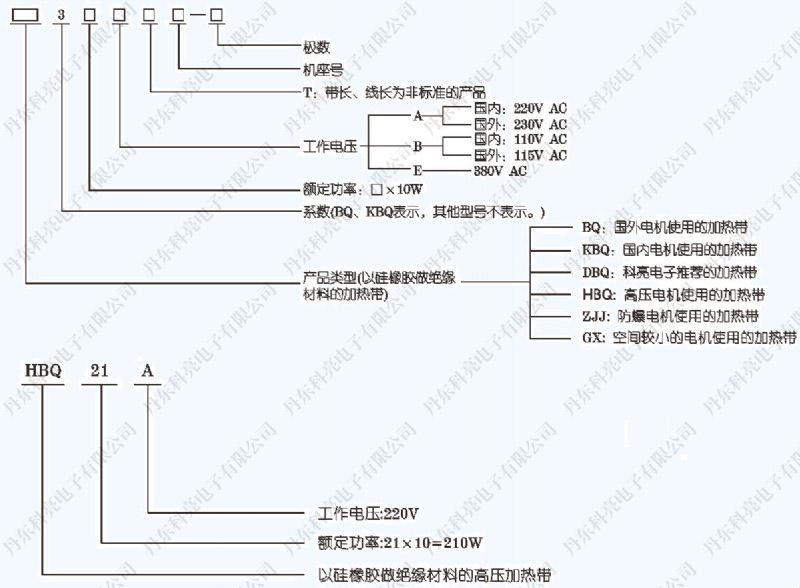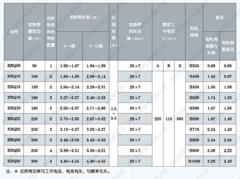 注:加热带功率与工作电压、电流有关,与频率无关。